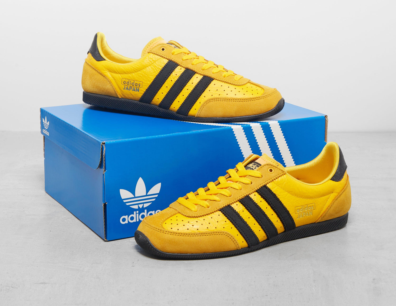 A reissue of a 1964 silhouette, adidas delivers its historic Japan shoe. Staying as close to the OG design as possible, the yellow leather uppers boast perforations around the double-stitched T-toe and up to the black 3-Stripes. Gold archive branding reaffirms heritage while underfoot grippy rubber coats the outsoles. -Â JI2665, Leather Upper/Synthetic Sole.