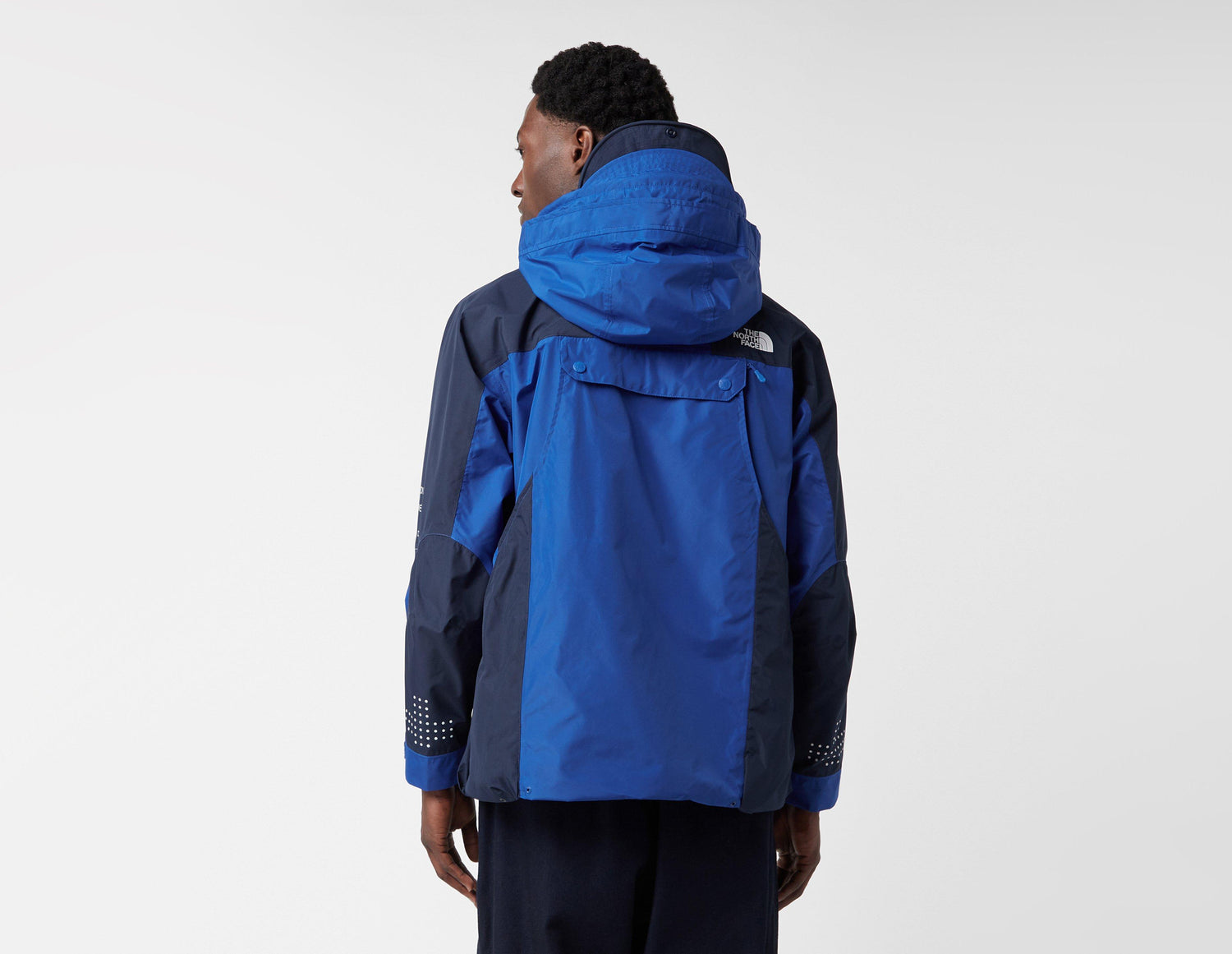 The North Face GORE-TEX Multi Pocket Jacket is based on the brand's iconic Mountain Jacket and is engineered with windproof GORE-TEX fabric for coverage in downpours. Reflective accents inspired by the construction of a TNF tent feature on the sleeve while the renowned Dome logo sits on the chest and reverse. With plenty of pockets for essentials and a hybrid look thanks to its layered construction, this outdoor-ready jacket is finished in navy and black colour blocking. | 686136