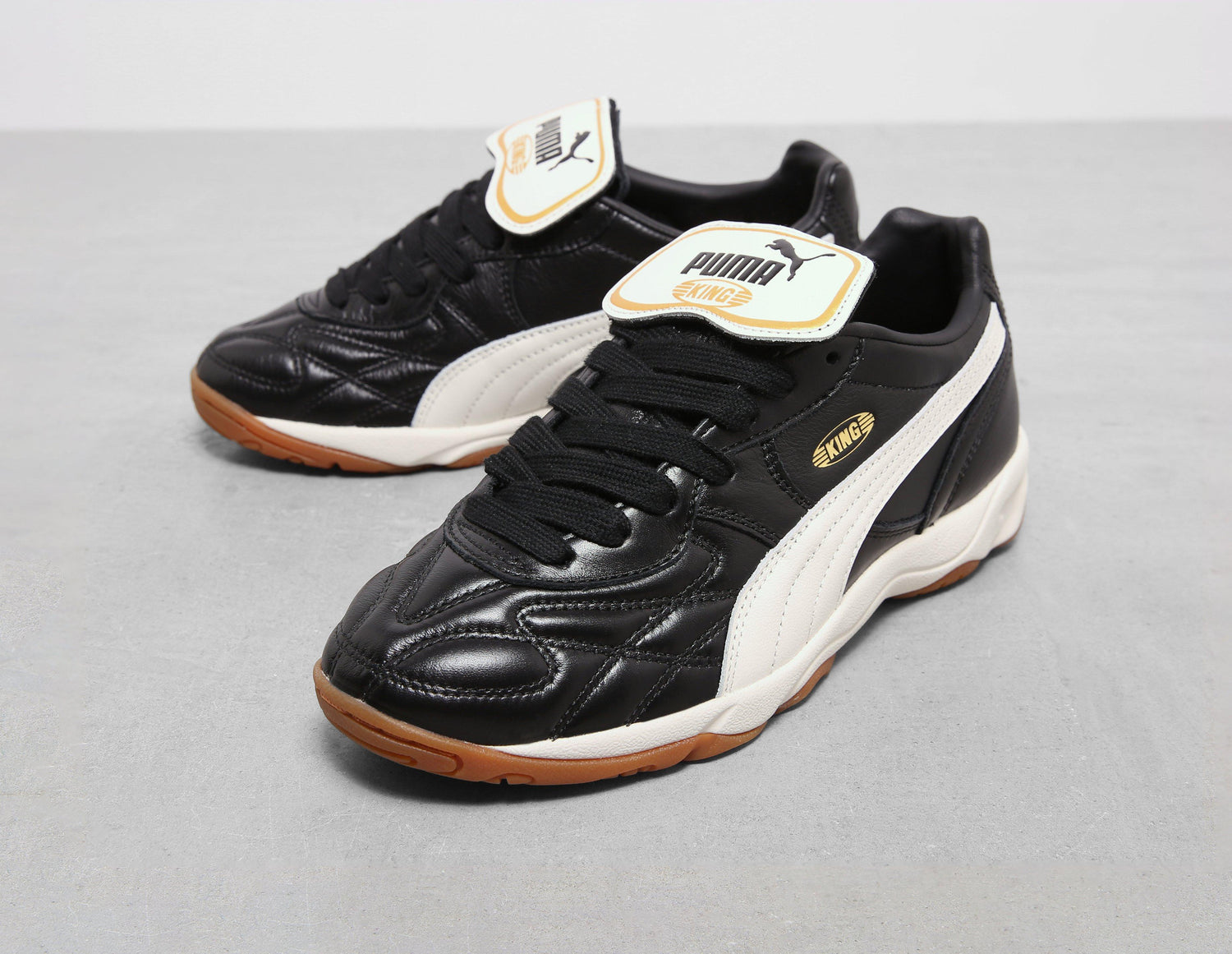 PUMA puise dans ses archives pour allier héritage footballistique et style moderne. La King Indoor est habillée d'un cuir premium décliné dans une palette de noir, rehaussé de touches de blanc qui persistent sur la languette amovible rabattable, le talon et les bandes latérales. Les semelles intermédiaires en EVA offrent un amorti optimal à chaque pas, tandis que le caoutchouc enveloppe la semelle de cette chaussure basse. | 401683_01
