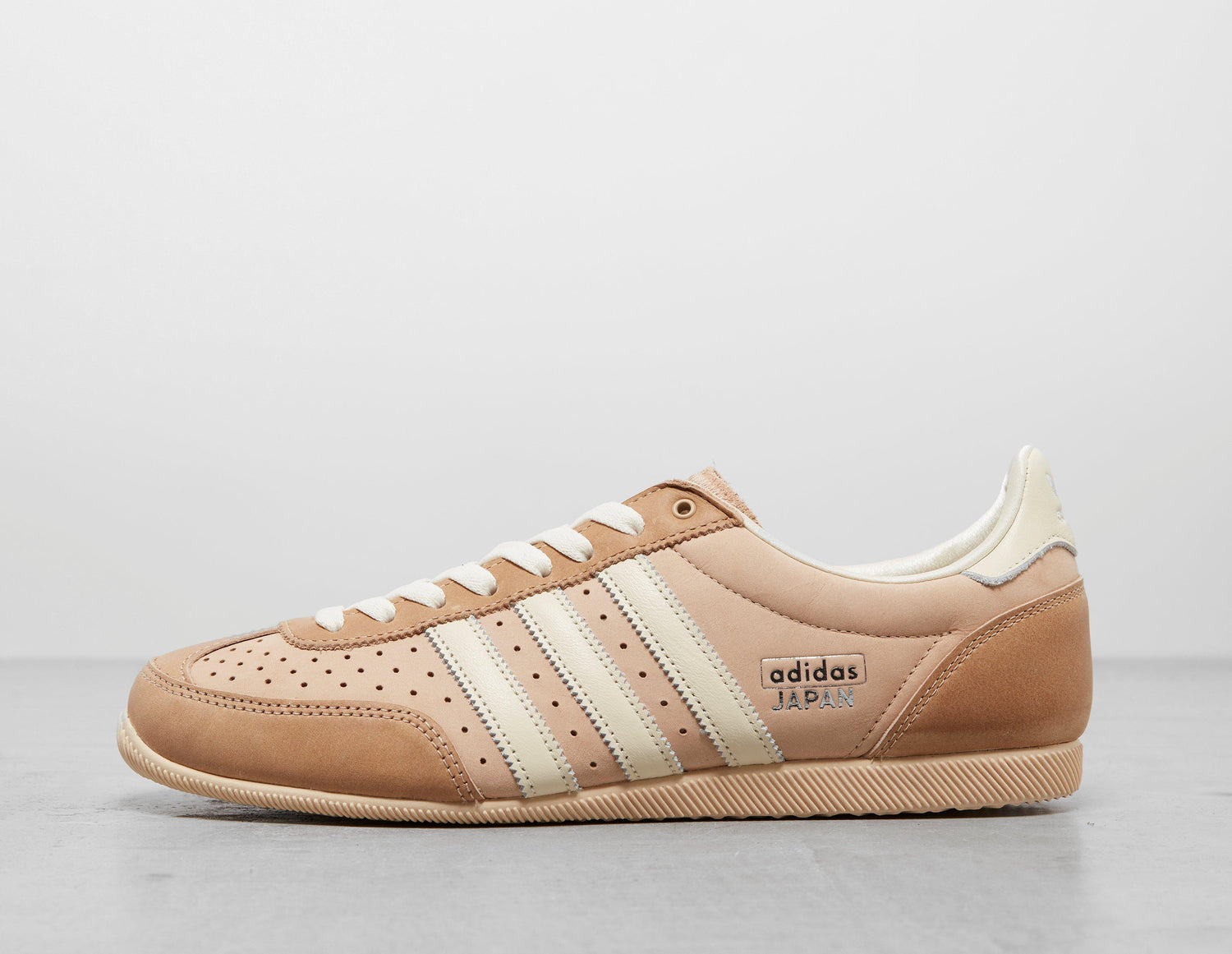 Réédition d'une silhouette de 1964, adidas propose sa chaussure japonaise historique. Fidèle au design original, la tige en cuir « Warm Sandstone » présente des perforations autour du bout en T à double couture et jusqu'aux 3 bandes blanches. Le logo doré des archives réaffirme l'héritage, tandis que la semelle extérieure est recouverte de caoutchouc adhérent. | JS0253