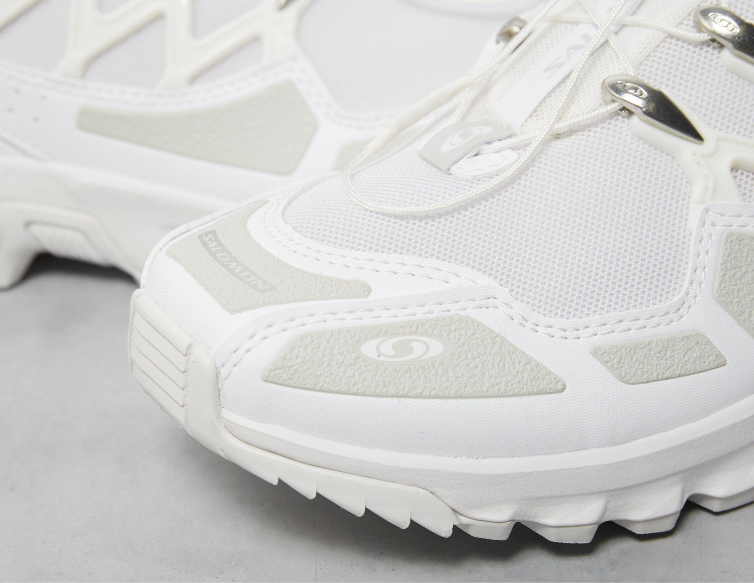 Offered in a crisp white hue, the ACS plus returns to Salomon's roster of trail-ready designs. This rendition sports a technical 3D mesh base that adds ventilating support to its mixture of synthetic and TPU overlays. A QuickLace system loops up to the roof of the fit, while the sturdy ACS system works with the EnergyCell midsole, backing you up with comfortability on your runs. The fit is also stacked with synthetic mudguards, OrthoLite sockliners and contains a Contagrip lugged rubber sole beneath. | L47236700 | 622387