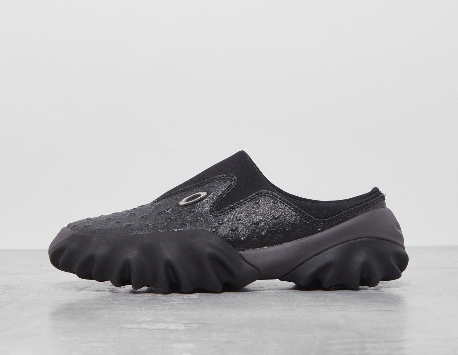 Oakley Factory is bringing back one of its classics here with the Chop Saw Mule, a striking ostrich printed silhouette with a laid-back shape that you can easily slip in and out of. Classic branding features on this one, while robust, exaggerated soles add a modernised element to its aesthetic. | BDP23S07003203RD02 | 629029