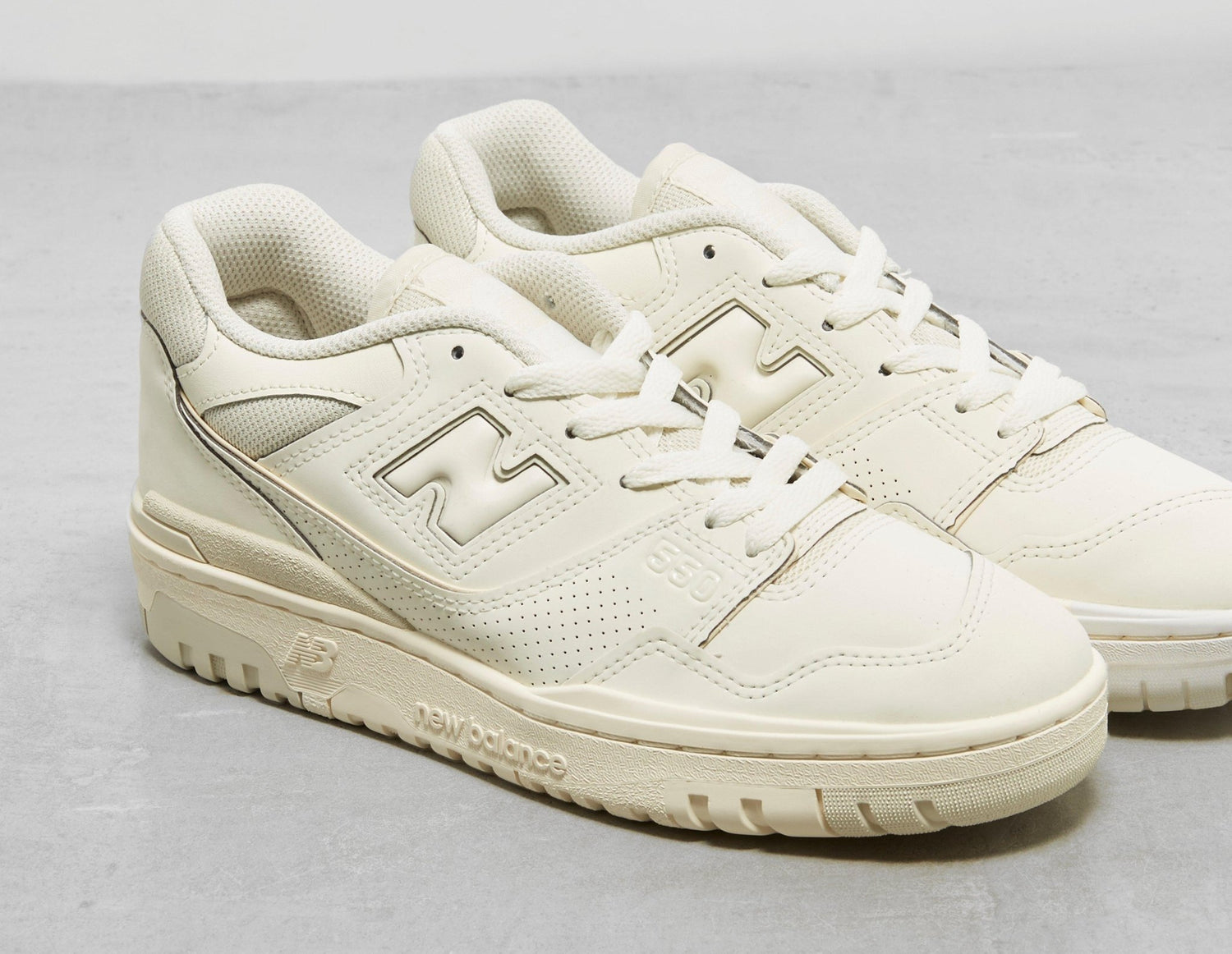 Revived from the 80s and becoming a true grail within the lifestyle space, New Balance presents its latest rendition of the 550. Repurposed into a monochromatic colourway, the New Balance 550 'Turtledove Sail' features upper panels of smooth off-white leather, perforated for breathability. 'N' labelling stays true to the laterals, while '550' numbered hits are subtle nod to the brand's sporting legacy. Ortholite midsoles grace the laterals with long lasting cushioning, while a rubber sole sets the groundwork for durable tread action. | BB550HSA | 643417