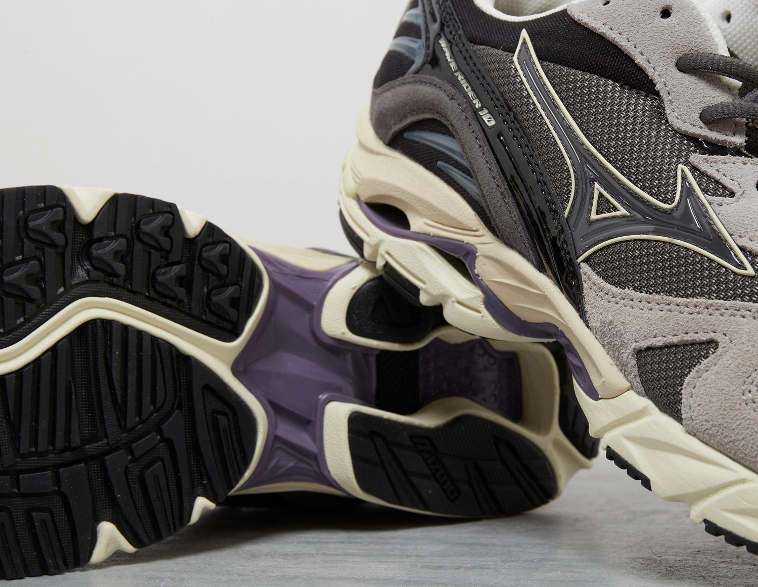 Drawing inspiration from the supernatural creatures from Japanese folklore, Mizuno's 'Yokai' pack blends tradition with the cutting edge. This iteration of the famed Wave Rider 10 is centred around 'Gashadokuro', the giant skeleton, opting for a darkened palette with grey and black hues topping the breathable mesh upper with premium suede and leather. Wave technology in the midsole propels you on through the day, and on the tongue, the paranormal motif awaits under a layer of mesh. | D1GA246401 | 708106
