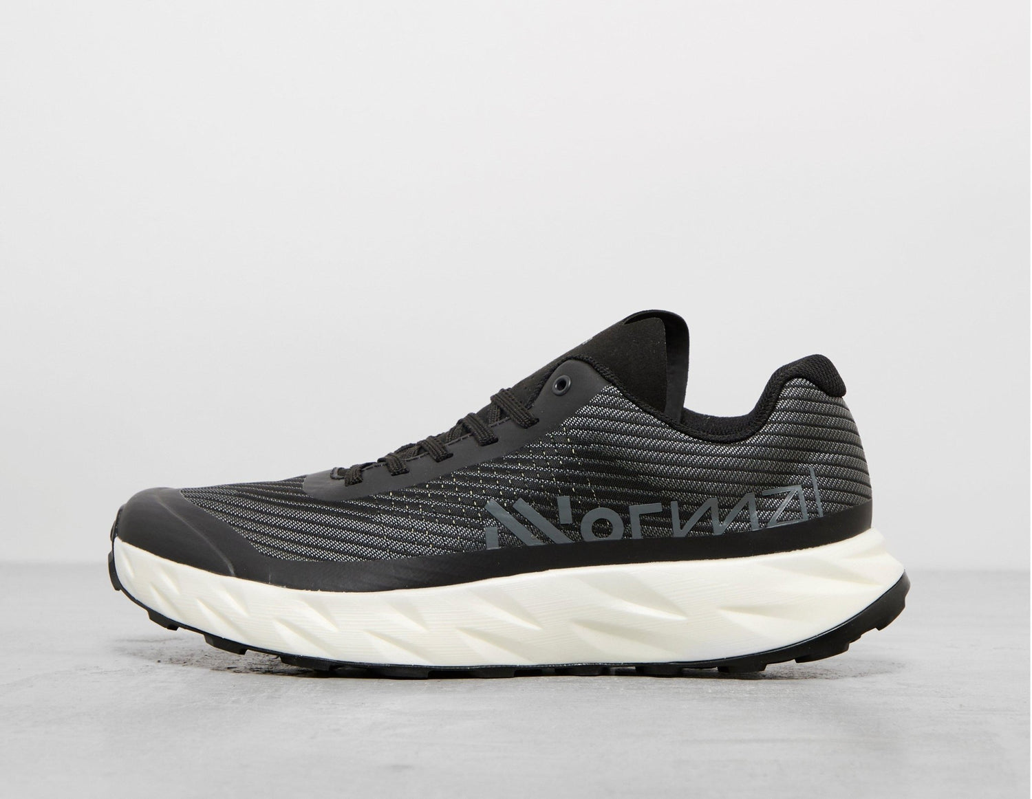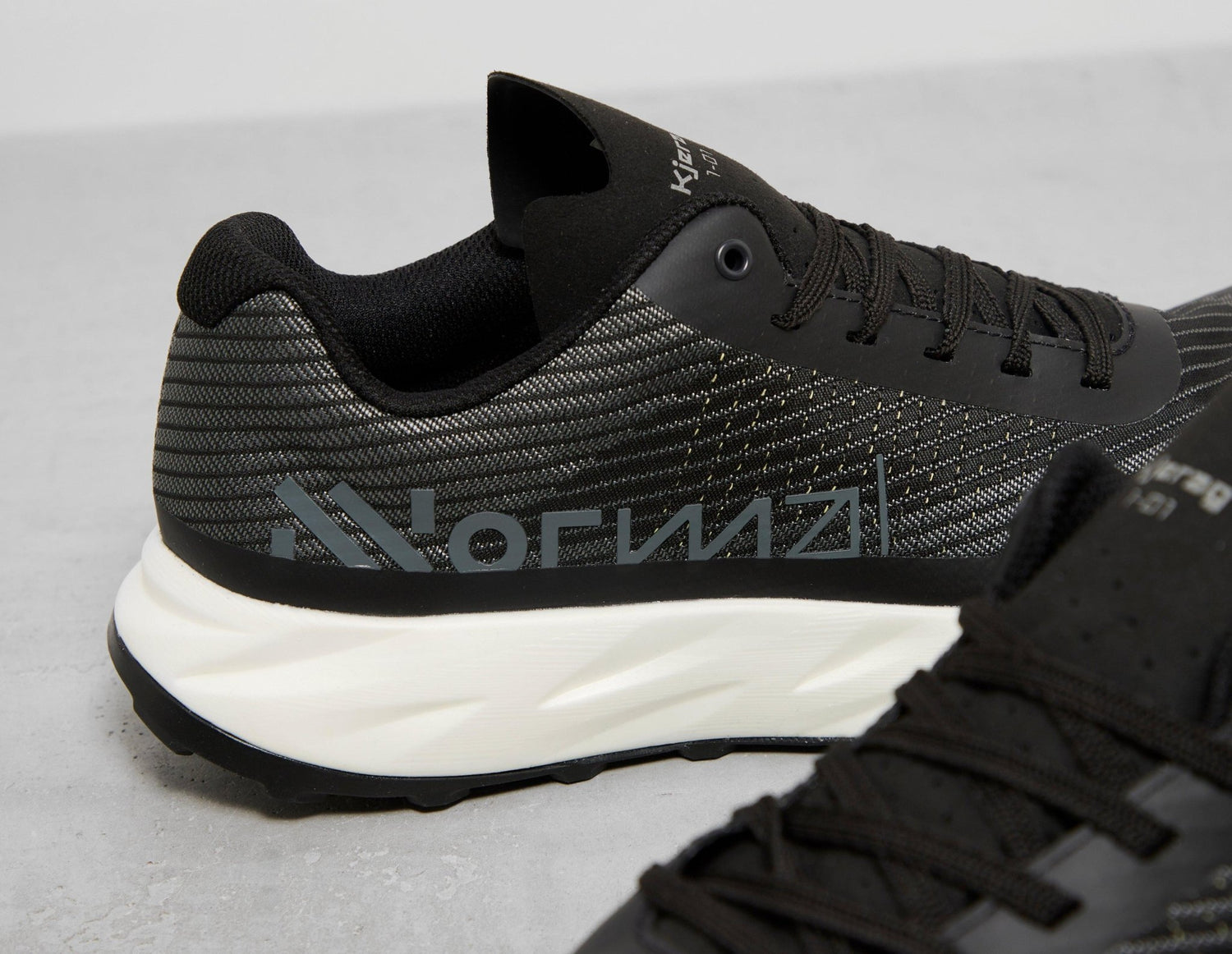 NNormal presents the forward-thinking Kjerag, an advanced trail running performance shoe that encourages you to go faster and further. The eco-conscious design uses Matryx jacquard in black - a breathable and durable woven material - to construct the upper, while the white chunky midsole showcases specifically engineered foam that offers a firm foothold and less rubbing. Underfoot, a grippy Vibram MegaGrip outsole will smoothly carry you across mud, slippery terrain and anything else your run throws at you. | N1ZKGM1-003 | 724367