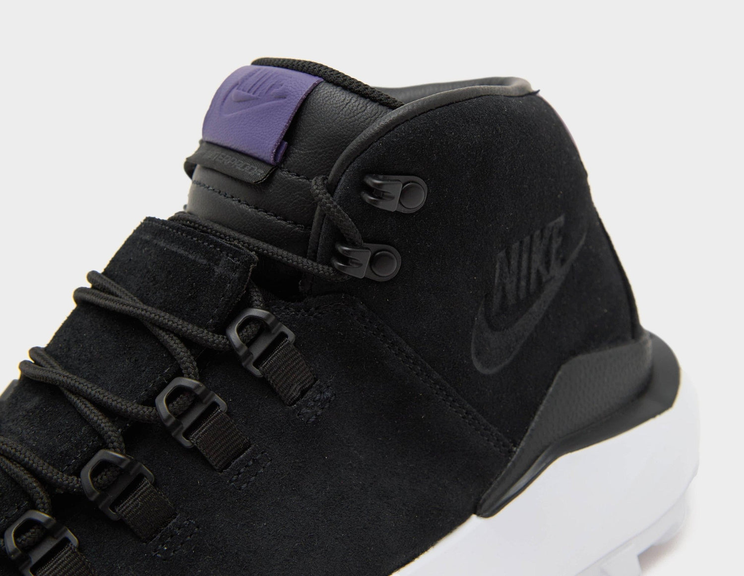 The latest design from Nike's ACG line takes inspiration from classic hiking boots, tailored to an urban wearer. Sturdy waterproof suede wraps the upper in black with contrasting purple tumbled leather patches on the heel and tongue, while the thick padded collar calls back to the '88 Air Magma. Underfoot, the chunky white midsole is fitted with ReactX foam cushioning, and an All-Terrain Compounds lugged outsole for extra grip. | FV4332-001 | 727260