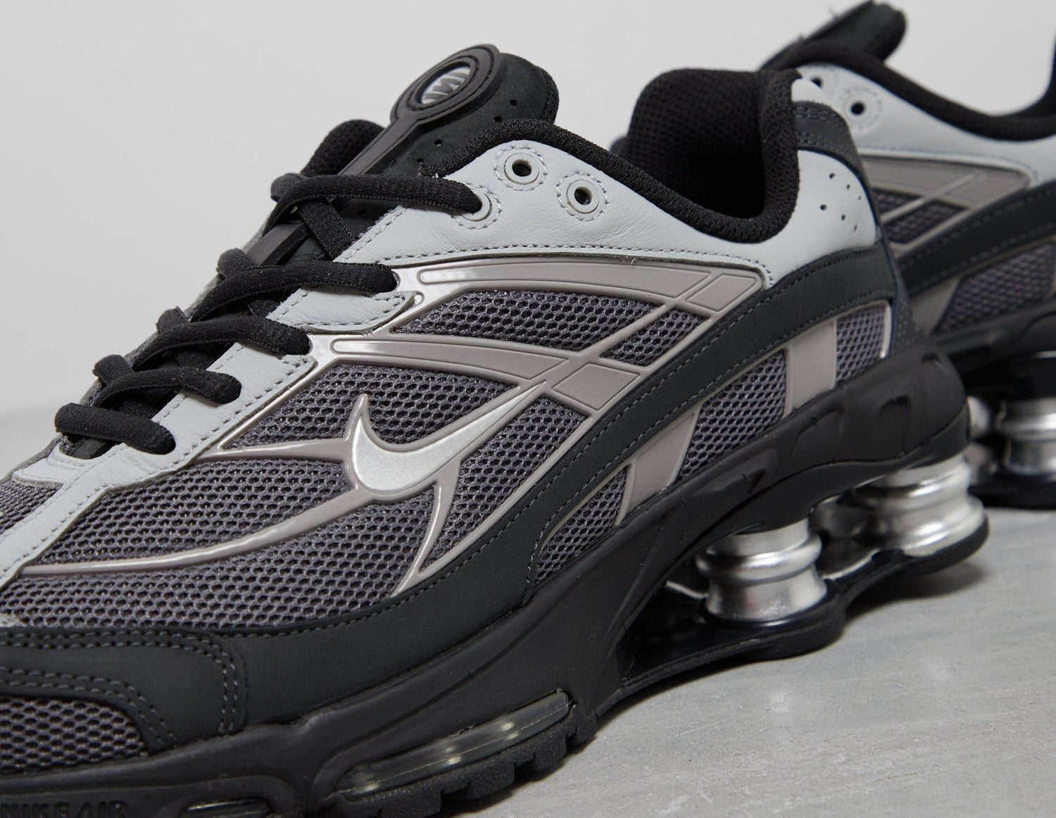 The latest archival comeback from the Shox lineage is the Nike Shox Ride 2, arriving in 'Light Graphite' and black. A mainly mesh upper is topped with a mix of real and synthetic leather in shades of grey, incorporating a '00s running feel to the silhouette, while hits of silver come into play on the tongue, Swoosh and heel branding. Unmatched bounce is delivered underfoot with the signature four responsive columns at the heels and visible Air units supported on the forefoot. | IB4470-099 | 727687