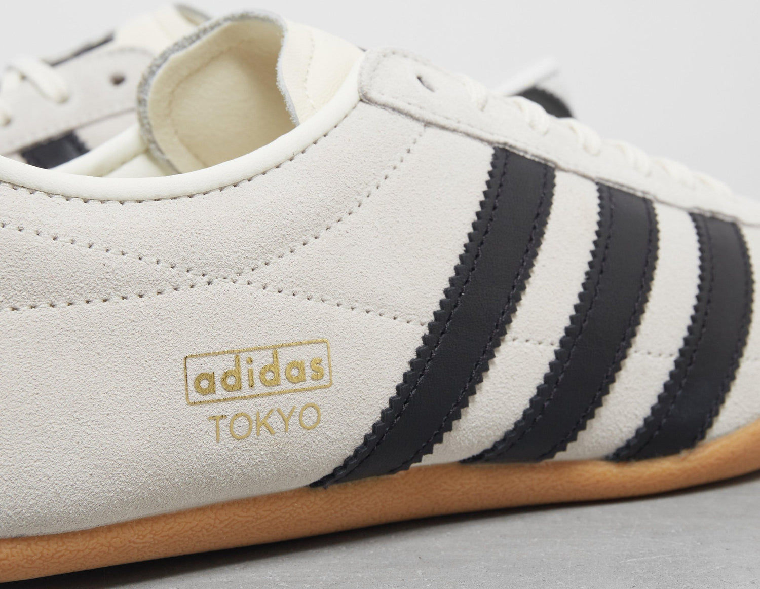 Inspired by the ‘70s running archive, the adidas Tokyo is a sleek, streamlined design that blends retro sensibilities with contemporary aesthetics. A premium ‘Off White’ suede upper features bold black leather detailing on the 3-Stripes and heel, while the slim rubber outsole offers an effortless underfoot feeling. | JI0182