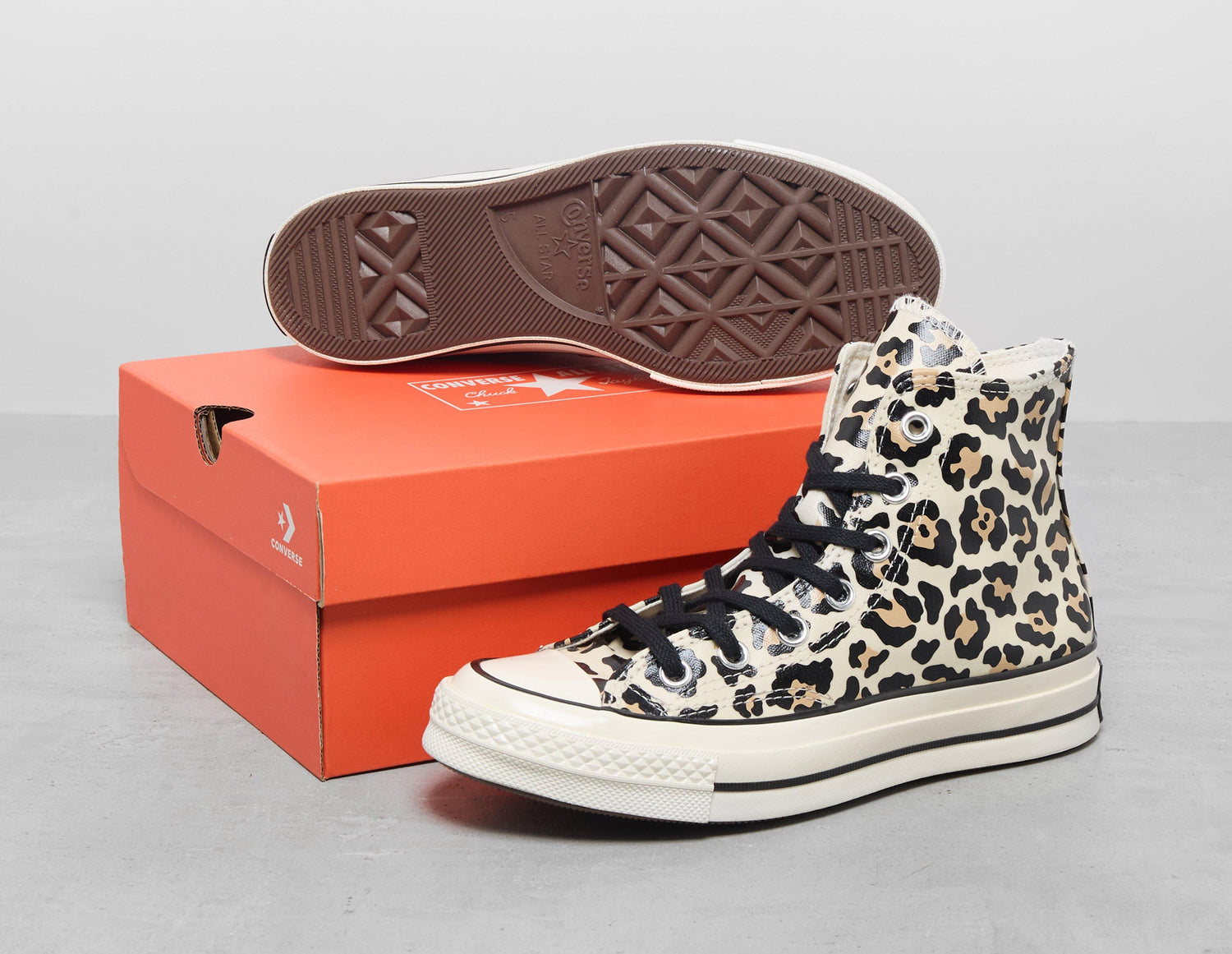 Dressed in an archival leopard print patterned canvas, the Chuck 70 from Converse also glows in the dark for an unexpected twist on a classic. Sitting atop the familiar 'Egret' midsole, the silhouette features Ortholite cushioning for added protection and is finished with a Chuck Taylor ankle patch and license plate branding