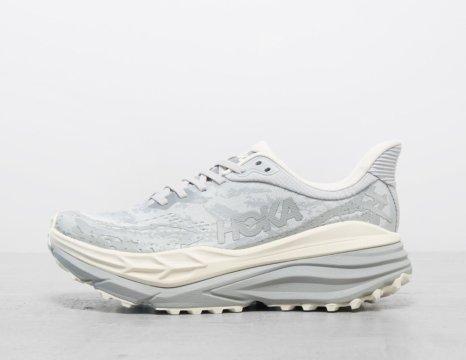 HOKA's Stinson 7 is chartered with a 'Stardust' engineered mesh upper backed by a durable toe cap. Below, a stabilising H frame and deep active foot frame provide soft landings with cushioning delivering bounce. Ideal for trails and city exploration alike, the pair are complete with lugged soles