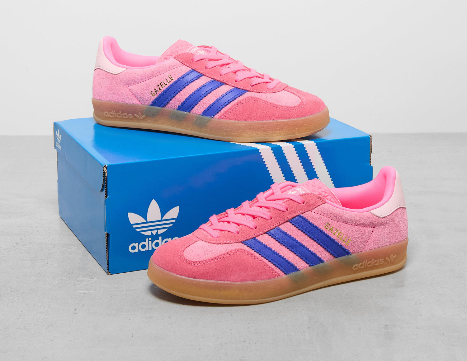 adidas Originals' Gazelle Indoor gets summoned in 'Lucid Pink' for its latest release. Premium suede wraps the low profile build with a T-toe while sitting atop the sidewalls are the renowned 3-Stripes along with a golden foil Gazelle moniker. Further down, a gum rubber sole adds an extra protective, grippy layer to the lowers. -Â JQ0194, Leather Upper/Synthetic Sole.
