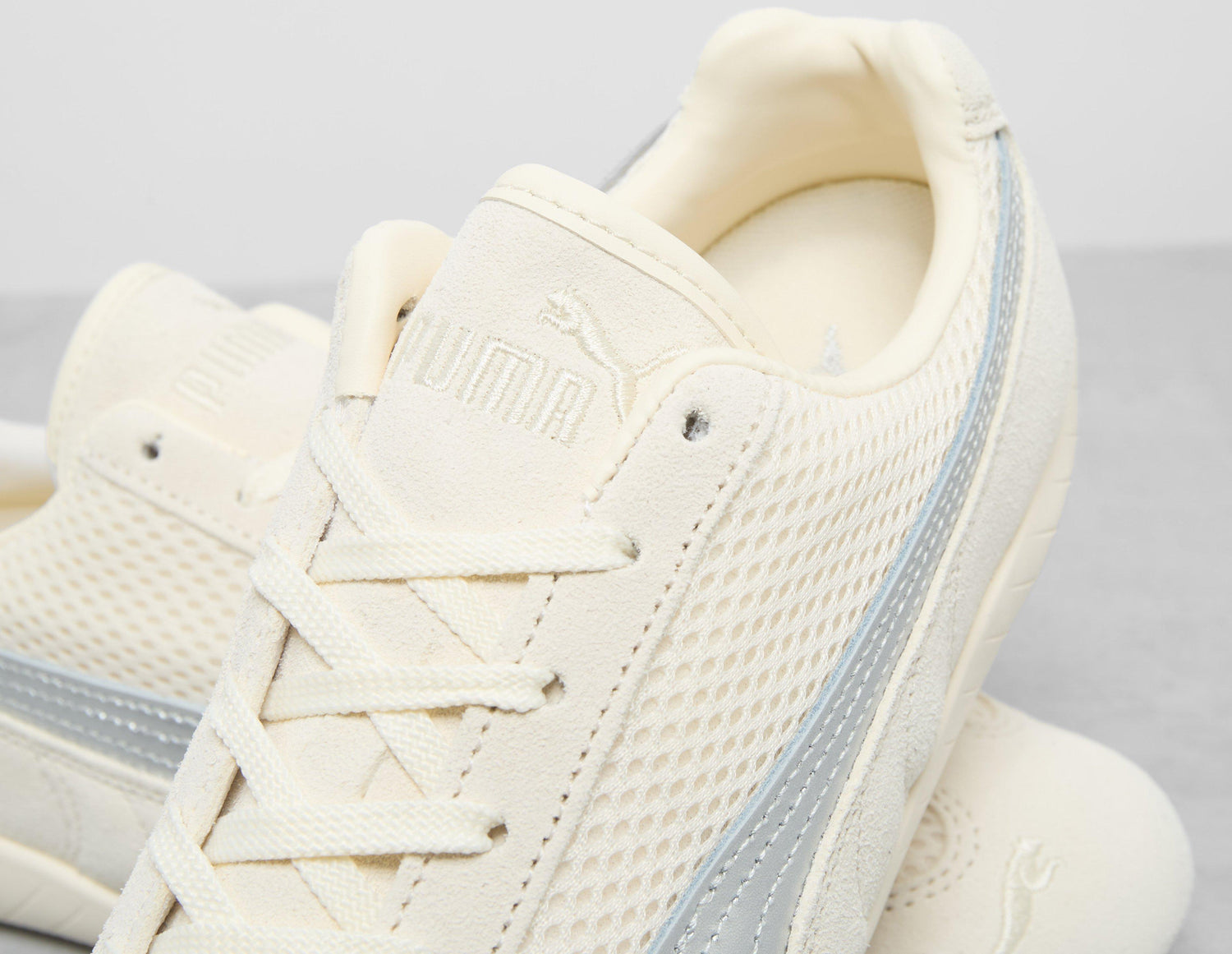 Inspired by the speed of the racetrack, the PUMA Speedcat made its debut in 1999 and quickly became an icon in the motorsport and lifestyle spaces. Today, the premium low-profile silhouette returns with a 'Frosted Ivory' mesh and suede upper with metallic leather Formstrips. Underfoot, a lightweight IMEVA tonal midsole is supported by the tire-tread-inspired rubber outsole. | 403902_01 | 748967