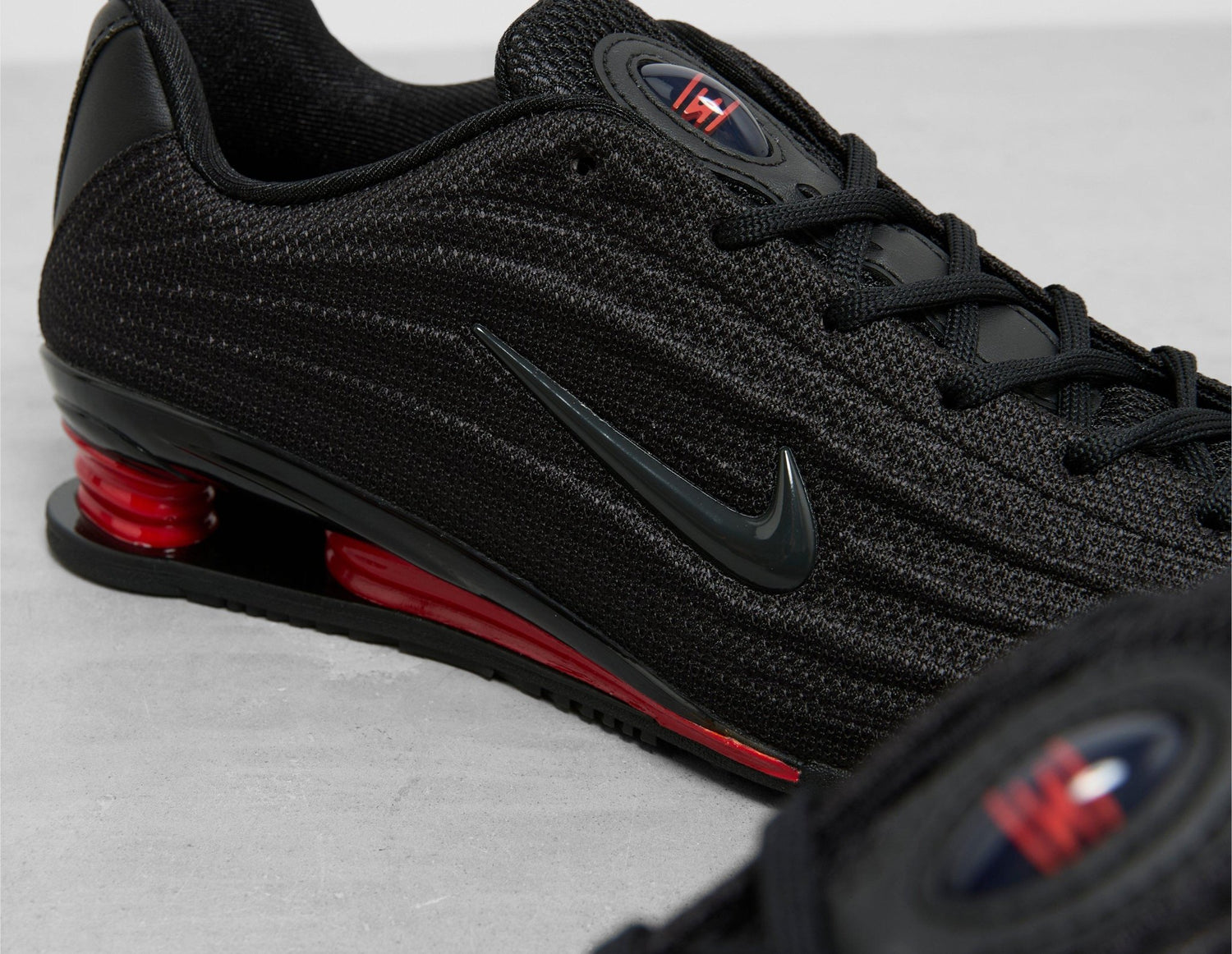 Nike adds something new to its Shox lineage this season, introducing the Shox Z. Redesigned with a sleek, low-profile silhouette, the Shox Z is shaped by a breathable black mesh upper that boasts sculpted lines for added dimension, while a no-sew overlay reinforces the toe. Kitten heel-inspired, the iconic 'University Red' columns have been designed with a lower, more flexible fit, supported by innovative outsole geometry that offers a durable grip. To finish, a 3D chrome Swoosh completes the look. | HQ7540-002 | 773613